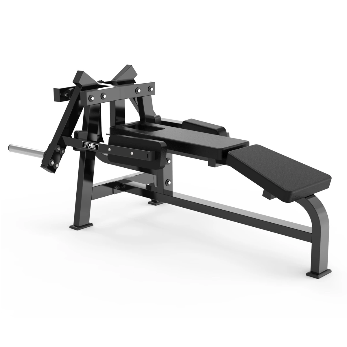 Sistema de carga por anilhas olímpicas: facilita ajuste progressivo da carga, com pegada firme e ergonomicamente projetada