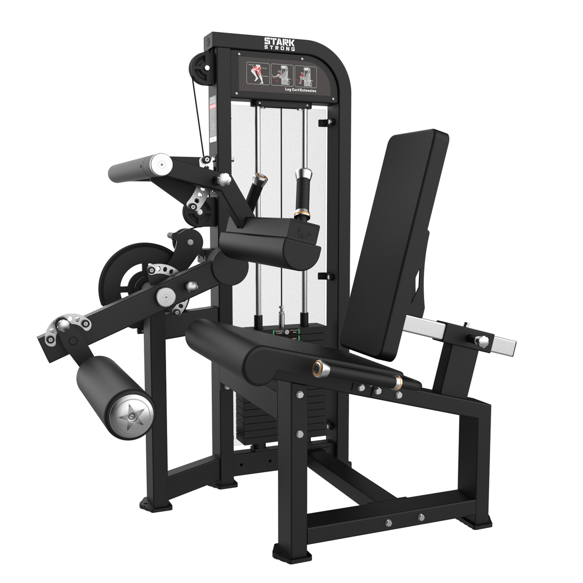 A Flexora-Extensora Com Carga Conjugadas é uma máquina versátil para fortalecimento dos músculos das pernas, oferecendo dois exercícios em um único equipamento: flexão e extensão de joelhos. Possui bateria de peso embutida, ajustes de altura e posição, e banco anatômico e ergonômico, garantindo conforto, segurança e eficiência no treino.
