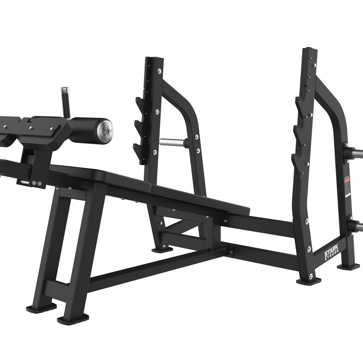 O Banco para Supino Declinado é ideal para o trabalho da parte inferior do peitoral. Possui estrutura robusta, apoio para pernas acolchoado e suportes para barra com múltiplas alturas, proporcionando conforto, segurança e estabilidade durante o exercício.