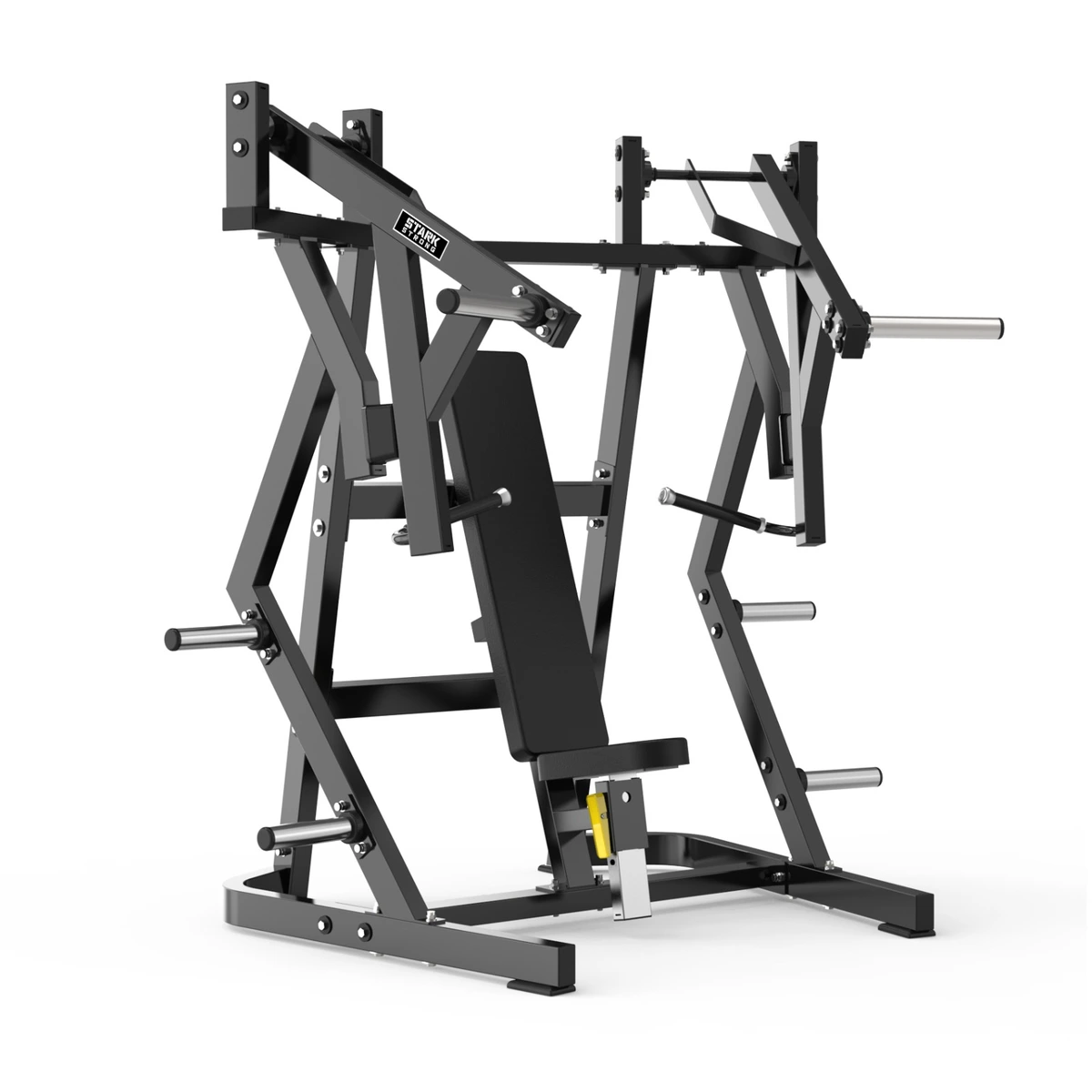 O Supino Reto Articulado é uma máquina de musculação projetada para o desenvolvimento seguro e eficaz do peitoral maior, deltoides e tríceps. Seu movimento articulado proporciona maior controle e estabilidade, simulando o exercício de supino reto com barra livre, mas com foco em segurança e ergonomia. Essa máquina é uma excelente alternativa ao supino reto tradicional, oferecendo uma execução biomecanicamente correta com braços articulados independentes. Ela garante amplitude ideal de movimento, evitando sobrecarga articular e promovendo o recrutamento máximo da musculatura alvo.